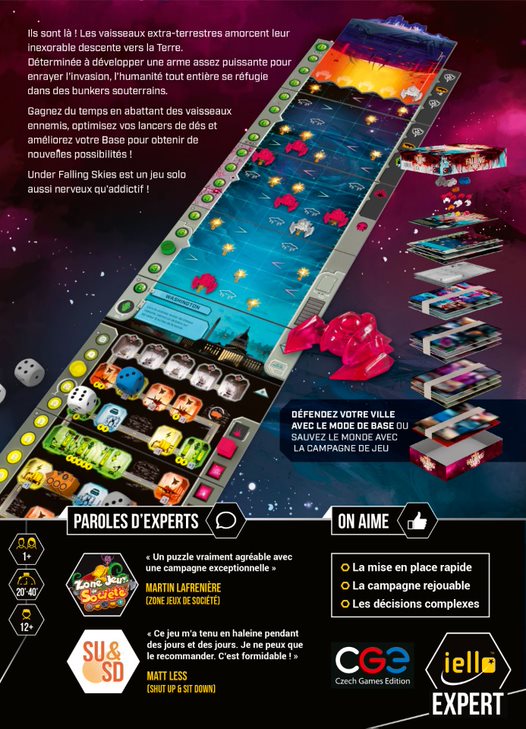 Under Falling Skies est un jeu solo avec une campagne multi-mission. Dans chaque mission, vous prenez en charge la défense d'une ville assiégée.