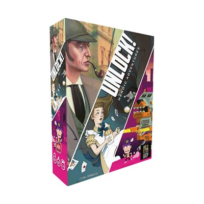 -Cette boîte Unlock contient trois aventures: Sherlock Holmes sur le fil, À la poursuite du lapin blanc, Insert Coin