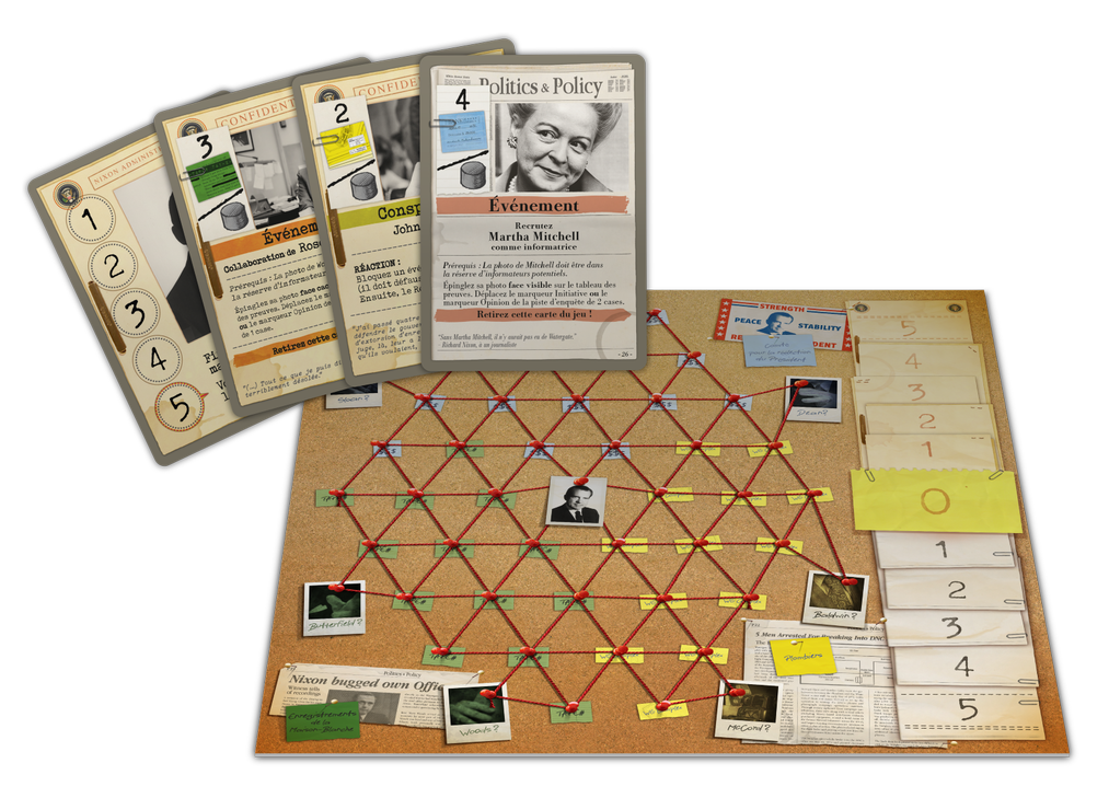 Watergate est un jeu tactique plein de tension, qui invite les joueurs à effectuer des choix stratégiques cornéliens pour atteindre leurs conditions de victoire avant l’adversaire. Fort de sa thématique totalement imprégnée dans le jeu, il permet de créer des duels épiques sur fond de scandale politique.