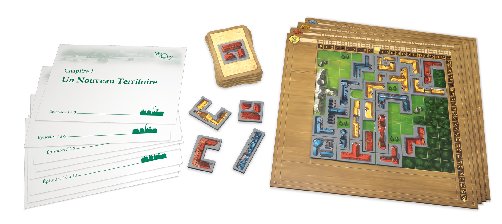 My City est un jeu compétitif "Legacy" dans lequel vous devrez développer une ville sur votre propre plateau de jeu à travers les âges.