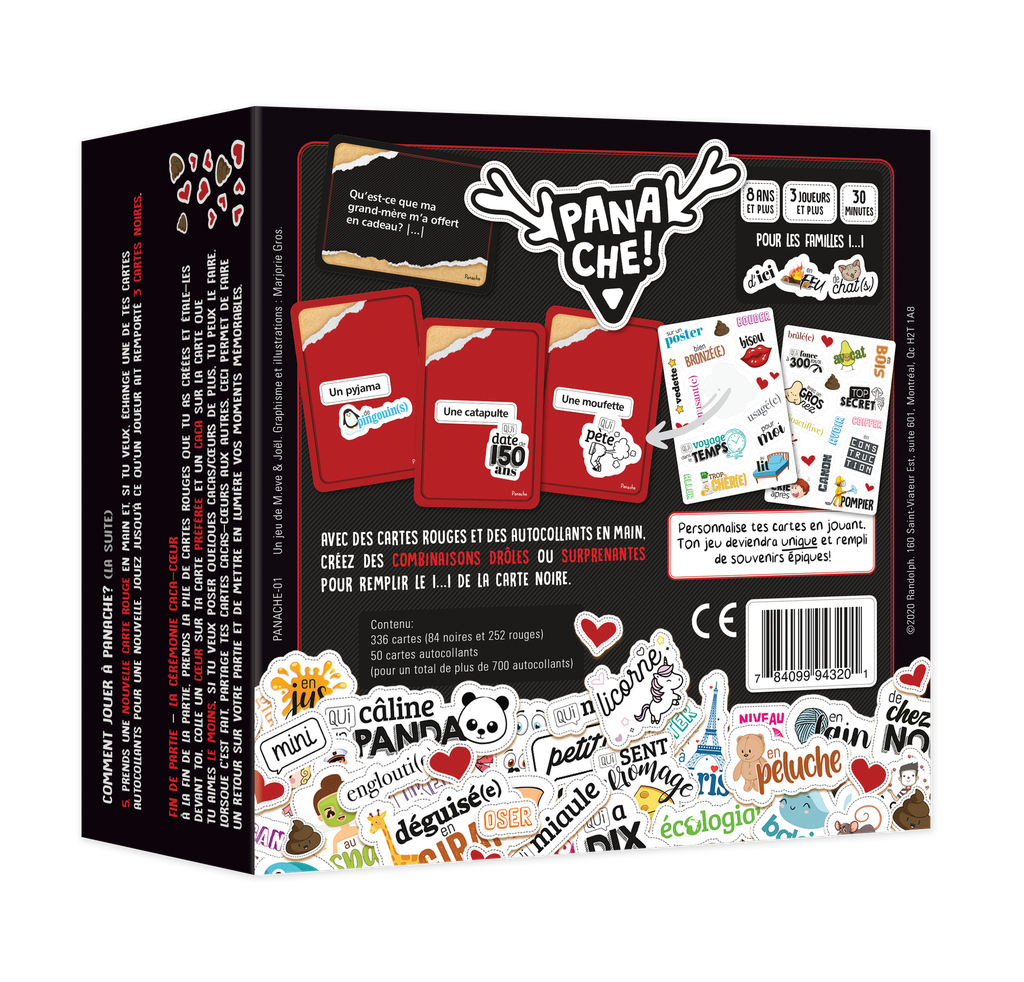 Une version révolutionnaire - et maintenant destinée à toute la famille - du célèbre jeu « L'osti d'jeu » ! Dans Panache, vous personnalisez vos cartes avec des autocollants !